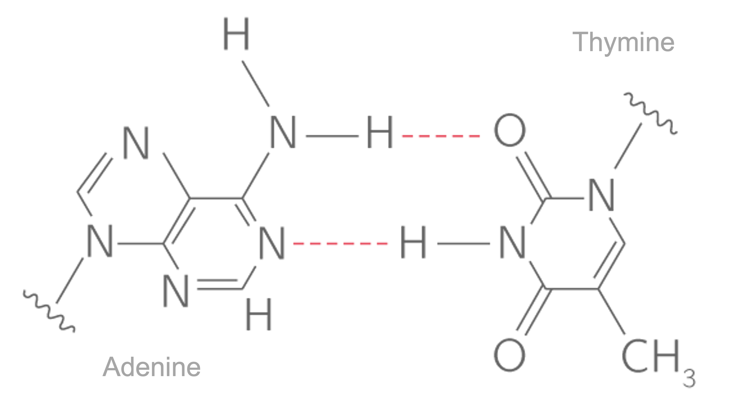 Figure 4.4: Most common nucleotides present in DNA and the chemical interactions that bond each pair.