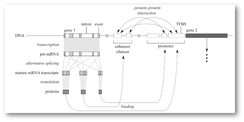 Figure 4.5: An extended representation of the central theory of molecular biology. Image from Mäkinen et al. (2015)